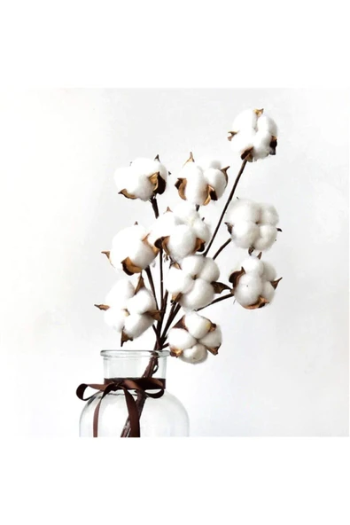 YENİ HEDİYELİK DÜNYAM Doğal Pamuk Çiçeği 10 Adet Tekli Dal Kuru Çiçek 30 Cm Yapay Çiçek