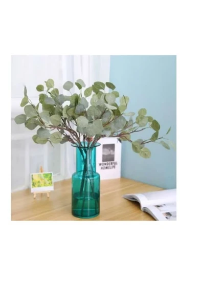 Vipfoni Okaliptüs Yapay Dekor Bitkisi Kalın Yaprak Demeti - Mat Yeşil