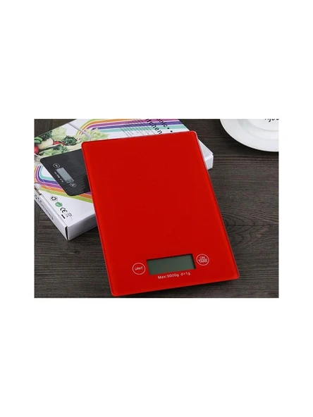 Dijital Hassas Terazi Cam Mutfak Tartı 5 kg / 1 gr - Kırmızı