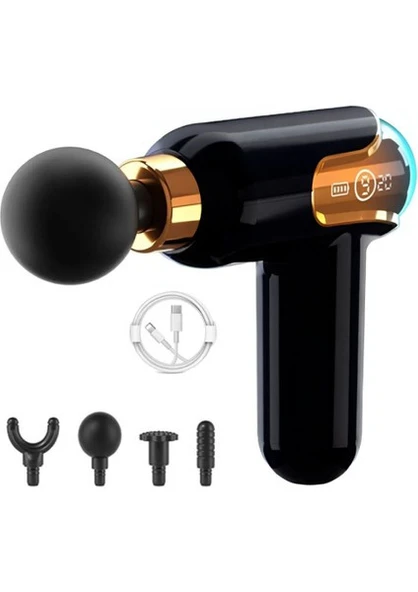 4 Başlıklı Darbeli Titreşimli Şarjlı LCD Ekranlı Sporcu Masaj Tabancası Masaj Aleti