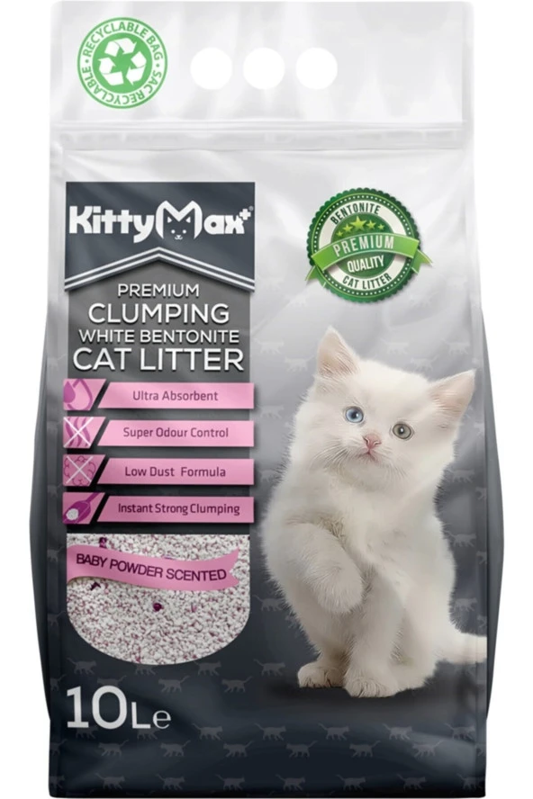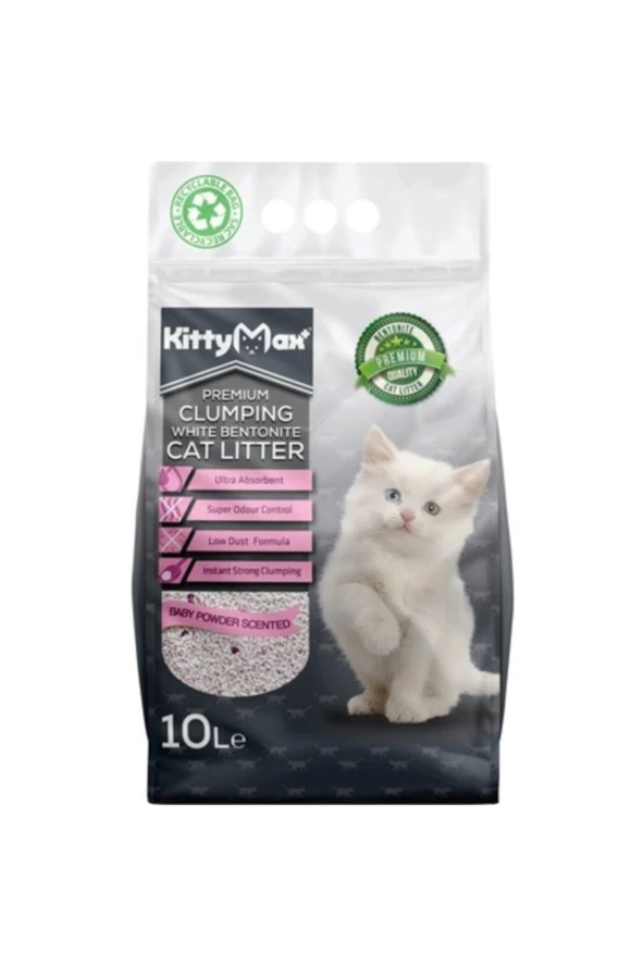 Kitty Max Bebek Pudrası Kokulu Bentonit Kedi Kumu 10lt Ince Taneli