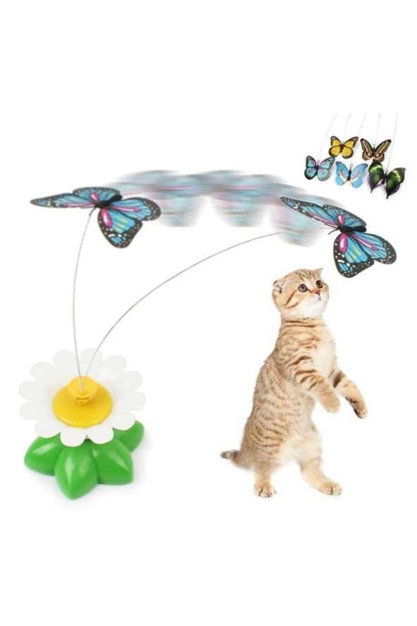 Kelebek Şeklinde Hareketli Dönen Pilli Kedi Oyuncağı