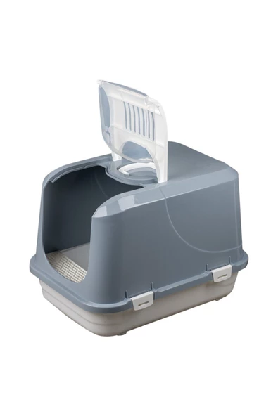 GÜNEY PET Büyük Boy Kapalı Kedi Tuvaleti Gri 58x42x42 Cm Kürek Hediyeli