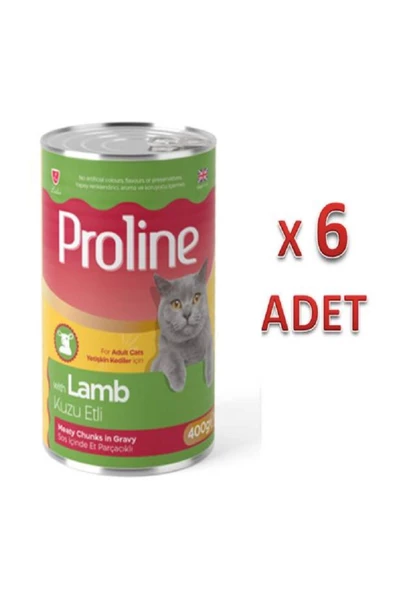 Pro Line Proline Kuzu Etli Sos İçinde Et Parçacıklı Konserve Yetişkin Kedi Maması 400gr x 6 Adet