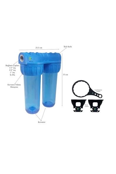 Watergold Çift Etkili Tortu Pislik Önleyici Su Arıtma Filtre20" Inç