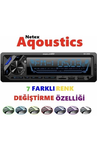Aqoustics sx 7500 3Amfi Çıkışlı İşlemcili Usb Bluetooth Profesyonel Oto Teyp