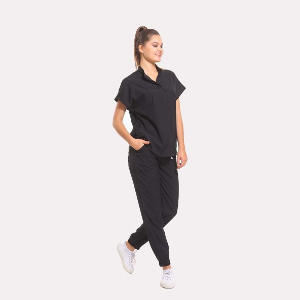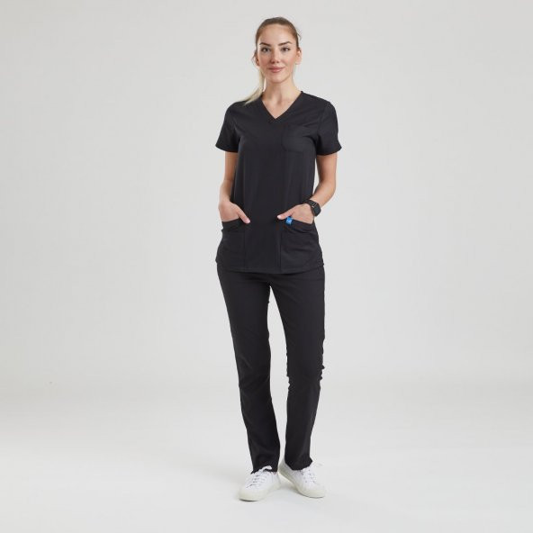 BASIC Kadın Likralı Üniforma Takımı- Siyah