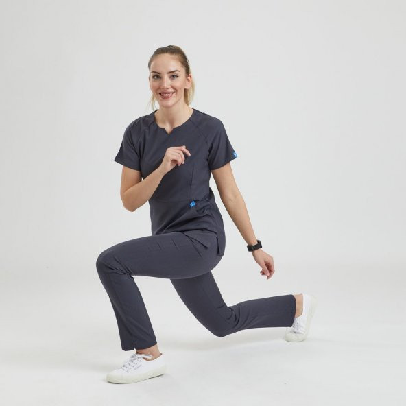 FREESIA Kadın Likralı Üniforma Takımı - Koyu Gri