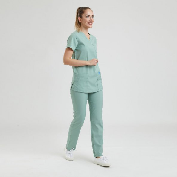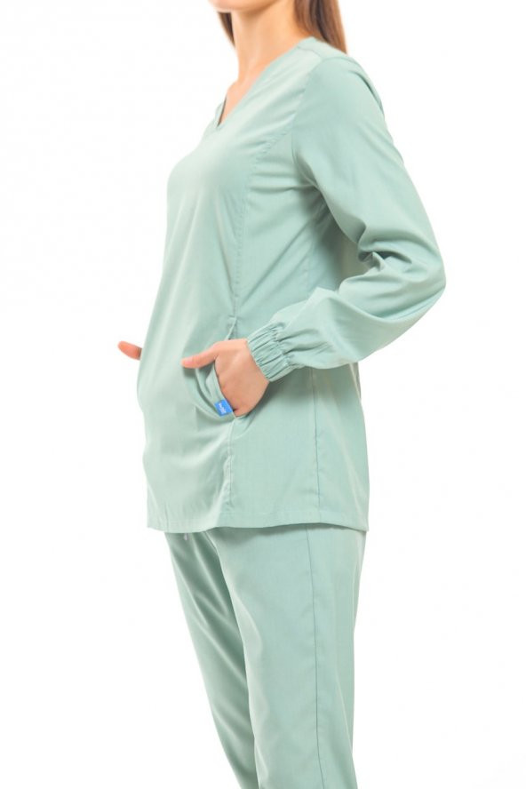 Wio Uniform TULİP Kadın Likralı Tesettür Mint Yeşili Üniforma Üst