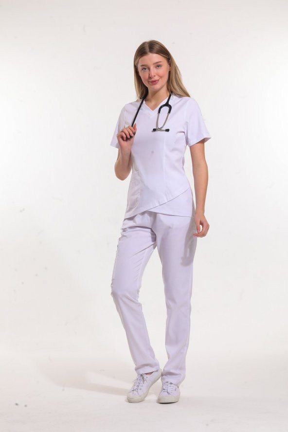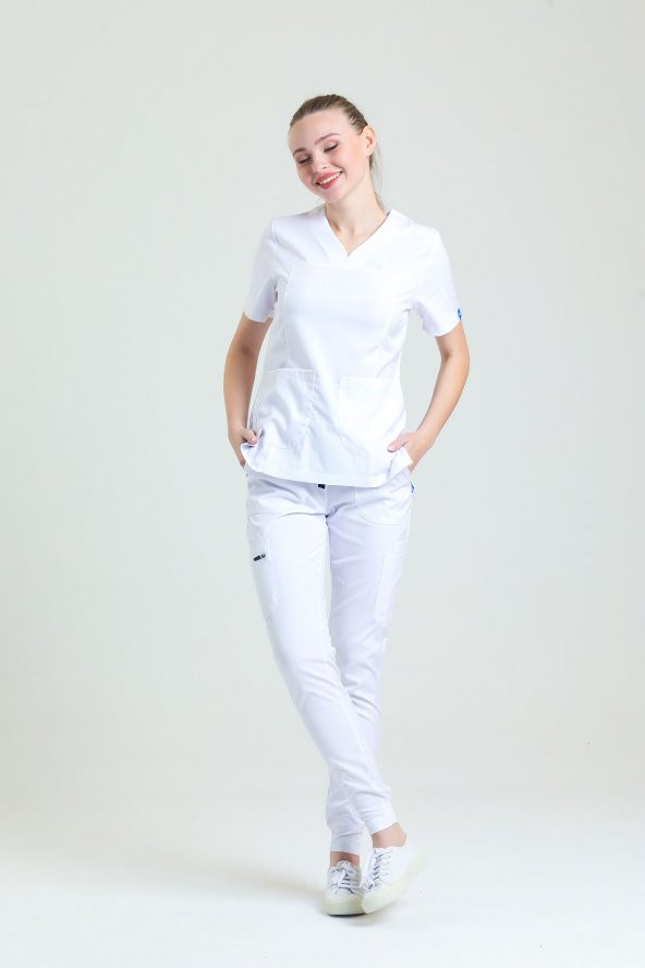 JANET- Kadın Likralı Beyaz Medikal Takım