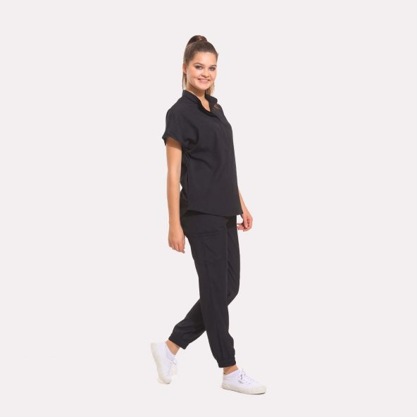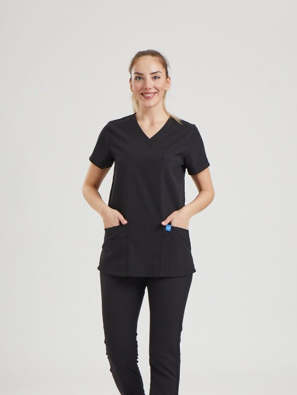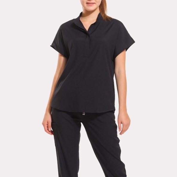 BASIC Kadın Likralı Üniforma Üst - Siyah