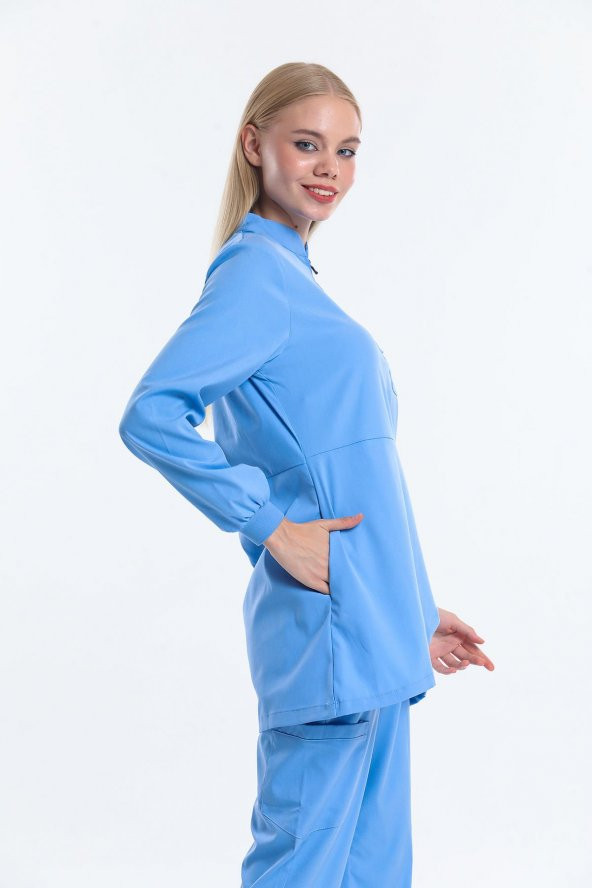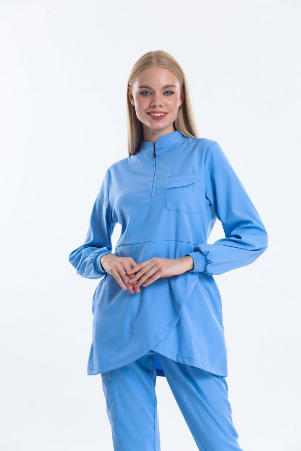 Wio Uniform JASMINE - Kadın Likralı Buz Mavi Tesettür Üniforma Üst