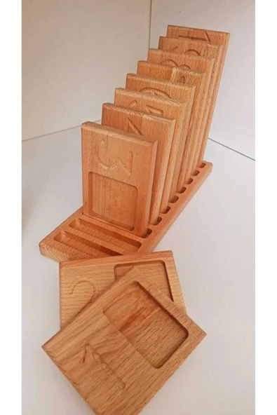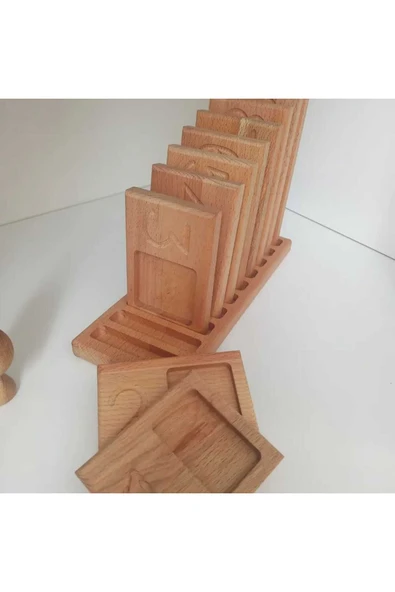 WOODTOY'S ORGANİK OYUNCAK DÜNYASI Montessori Ahşap Harf Matı Ve Pulları