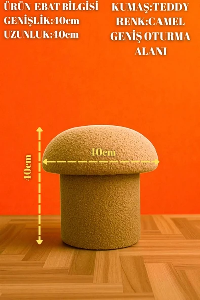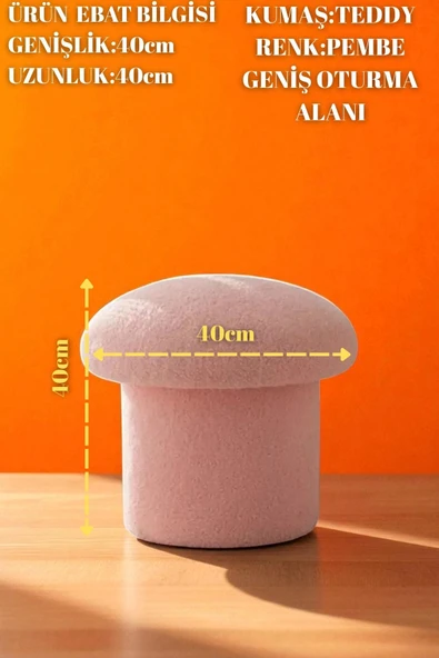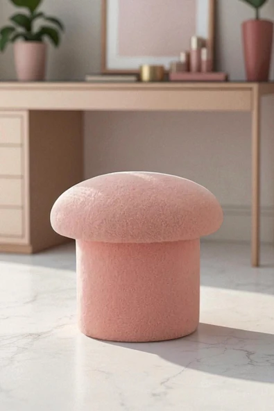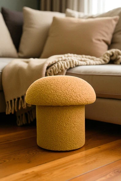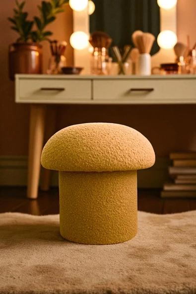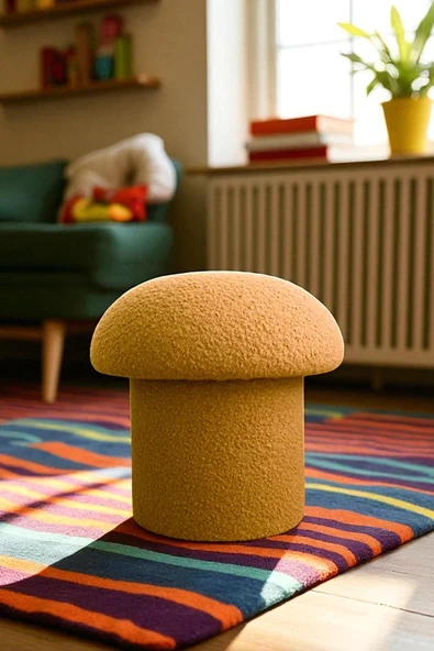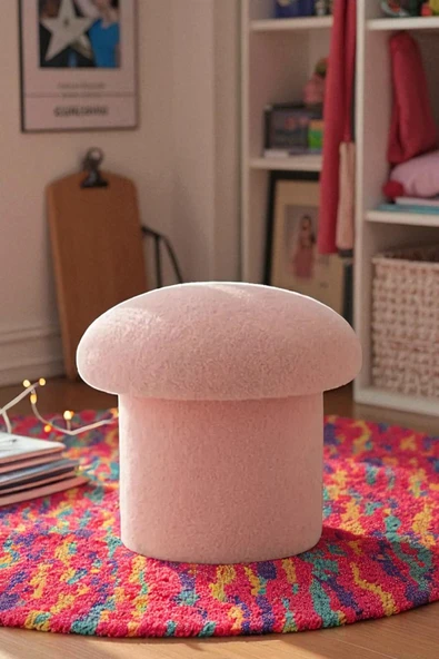 WoodyMaison Mushie Mantar Puf – Renkli Teddy Peluş Kumaş, Dekoratif Modern Bench