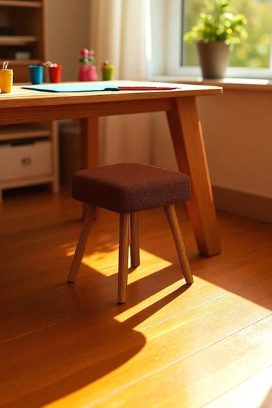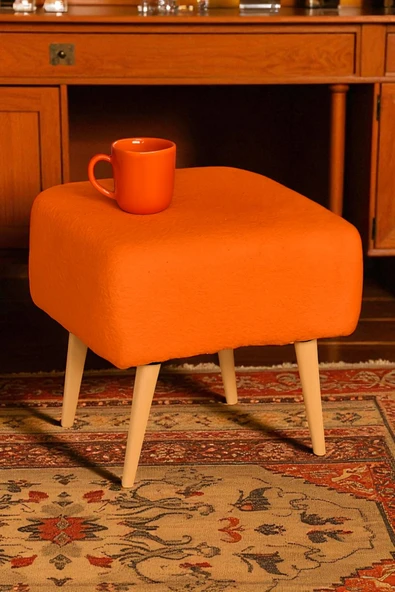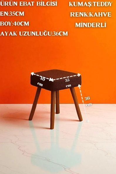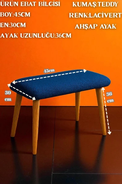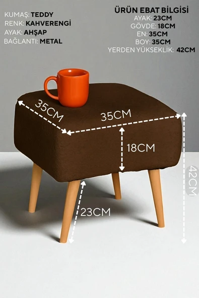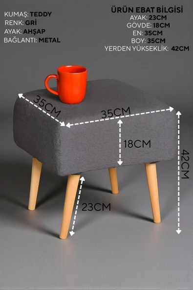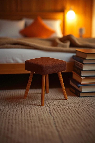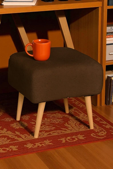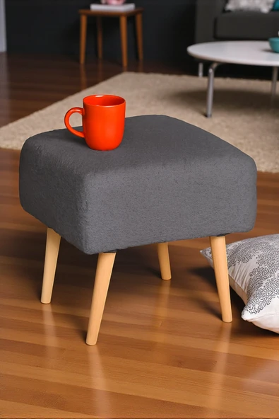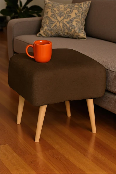 WoodyMaison Voca Kumaş Kare Puf – Ahşap Ayaklı, Çok Amaçlı Tabure, Bench ve Makyaj Pufu