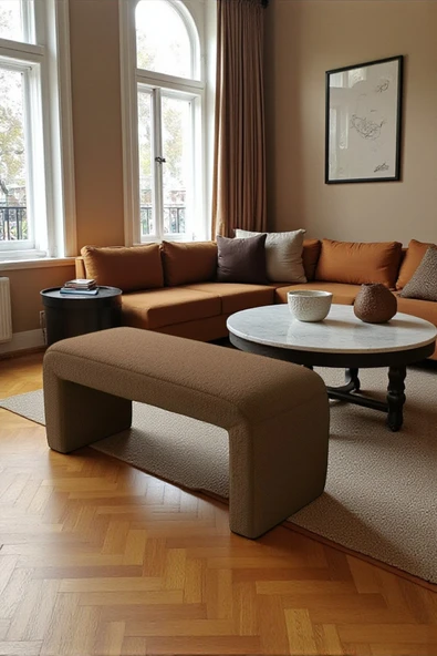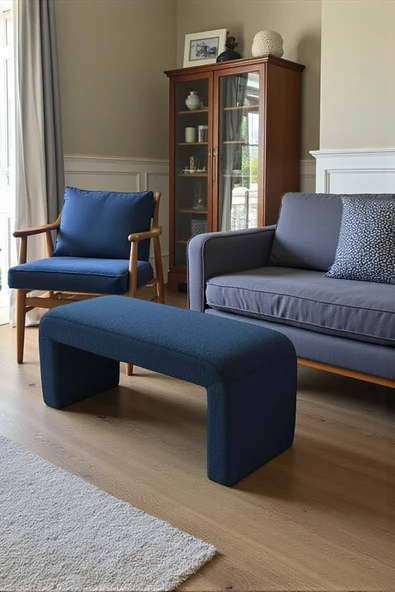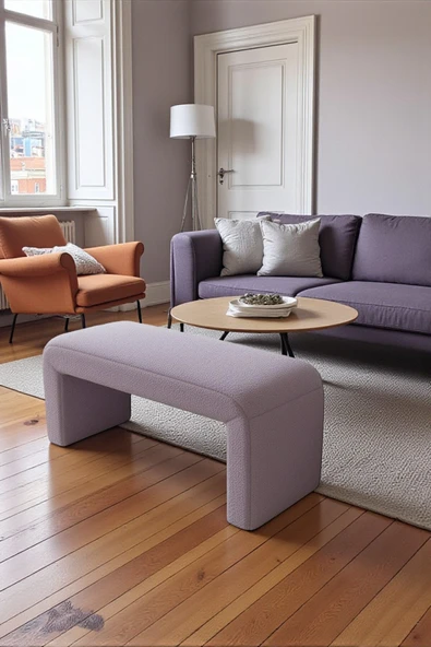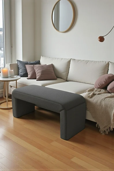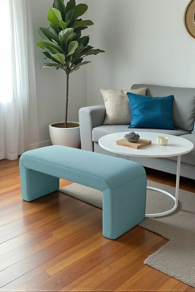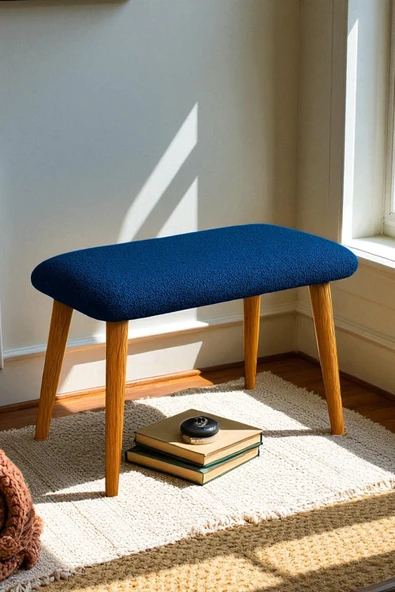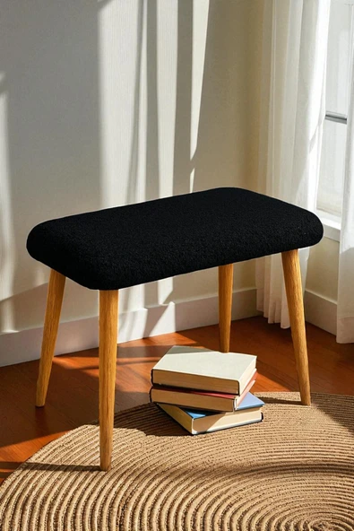 WoodyMaison Verta Kare Peluş Puf Bench – Ahşap Ayaklı, Dekoratif ve Rahat