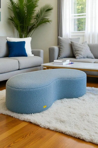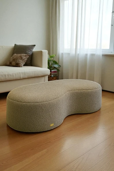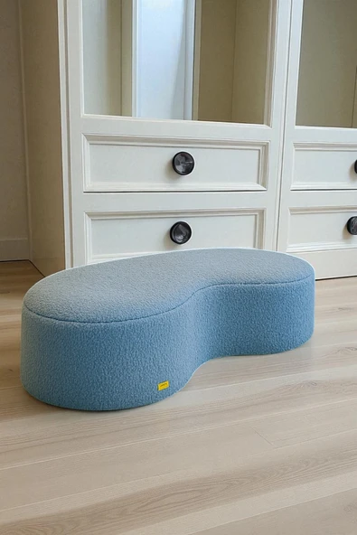 WoodyMaison Riven Bulut Puf – Peluş Teddy Kumaş, Yuvarlak Kenarlı Modern Oturma Pufu