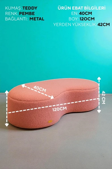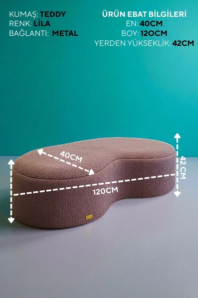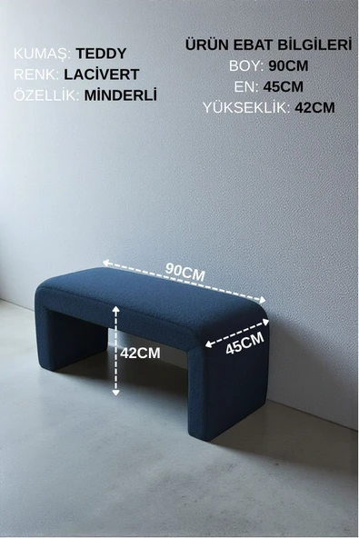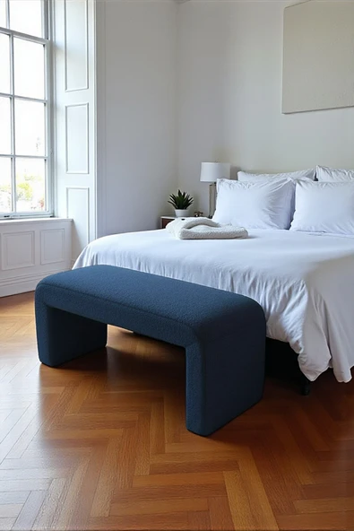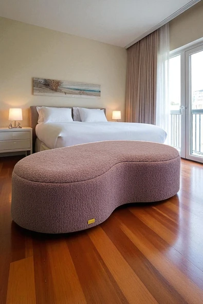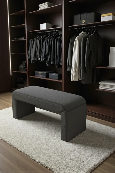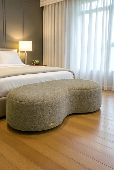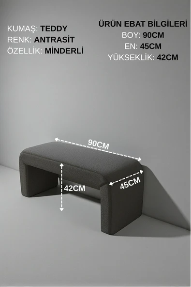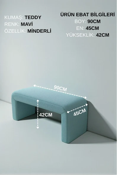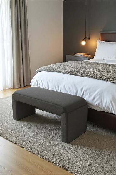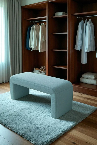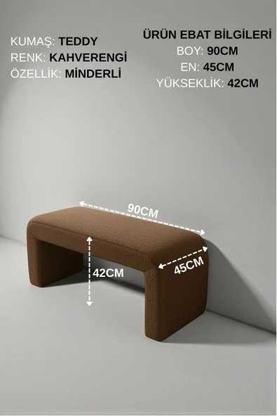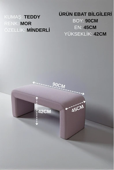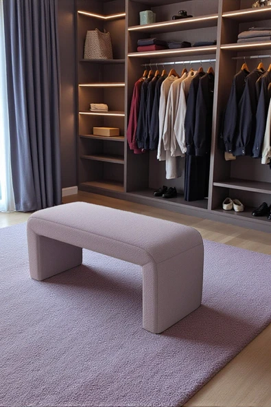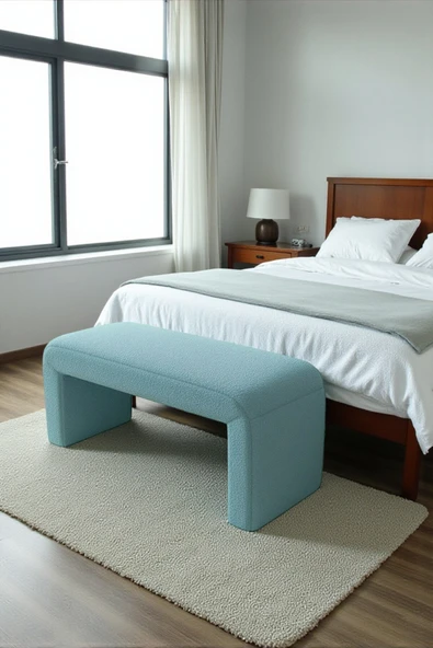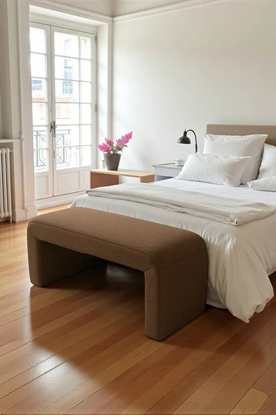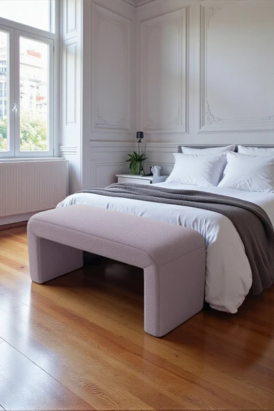 WoodyMaison LIORAE Dekoratif Teddy Kumaş Bench – Modern Dikdörtgen Yatak Ucu Pufu