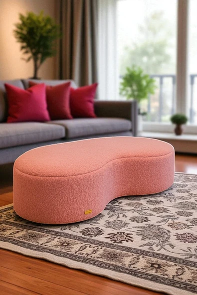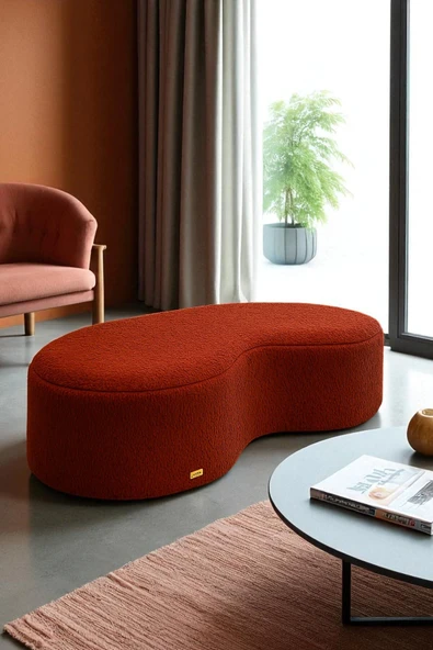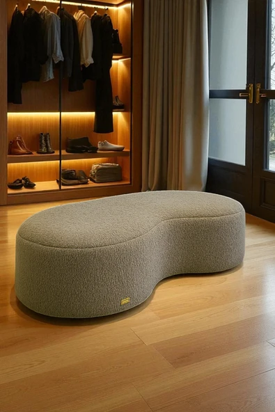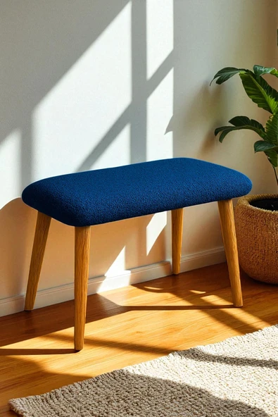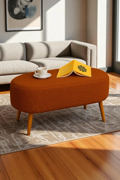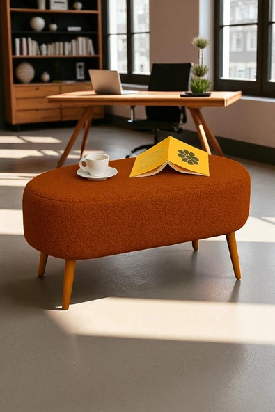 WoodyMaison Liva Büyük Oval Puf Bench – Ahşap Retro Ayaklı, Dekoratif Peluş Tabure