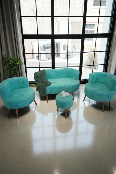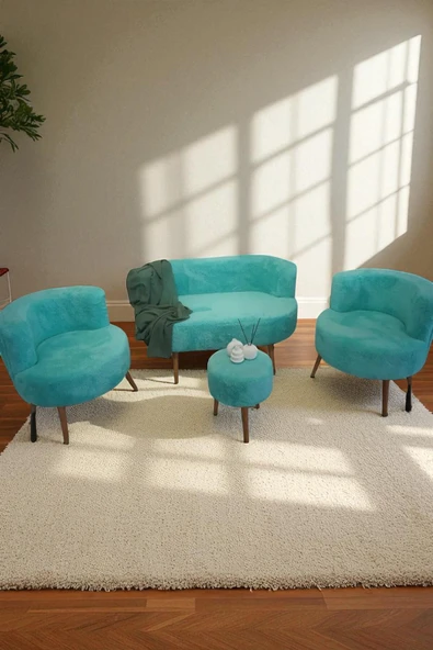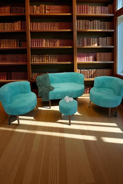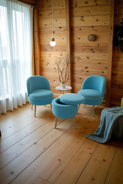 WoodyMaison Bella Oturma Takımı–İkili Koltuk, İki Adet Berjer ve Bir Adet Sandıklı Puf, Ofis & Salon Kullanımı