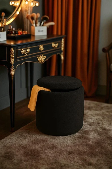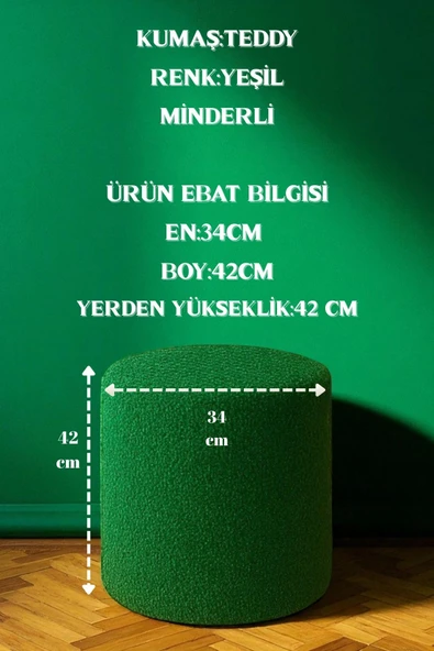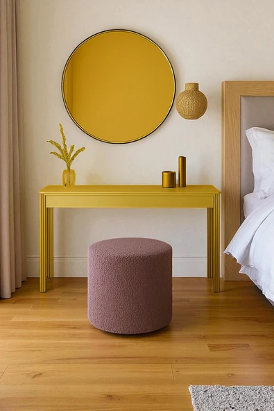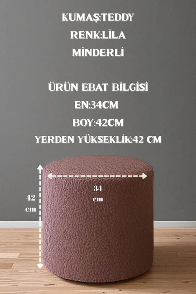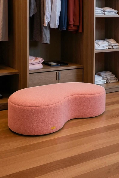 WoodyMaison Floransa Yumuşak Teddy Peluş Kumaş Silindir Bench Puf Makyaj Masası Pufu Tabure