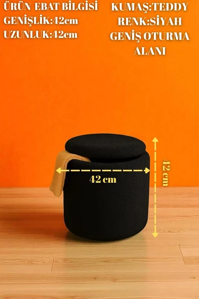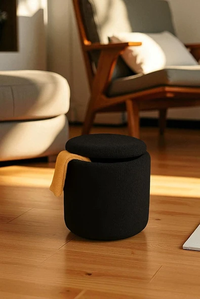 WoodyMaison Chest Sandıklı Silindir Puf – Teddy Kumaş, Dekoratif Modern Bench