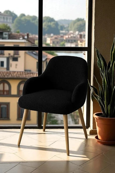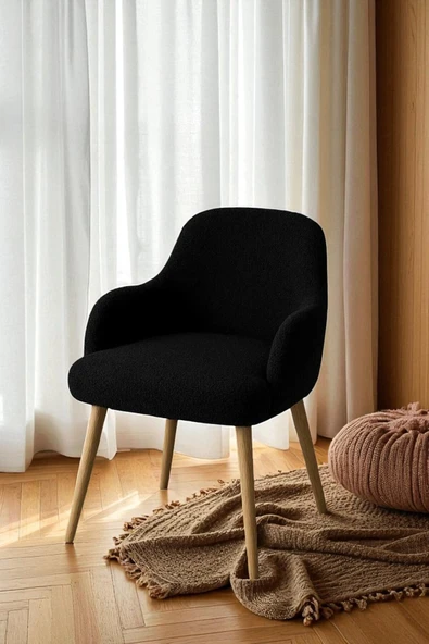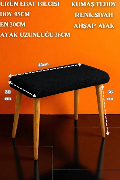 WoodyMaison Velora Peluş Kumaş Sırtlı Puf Sandalye – Ahşap Ayaklı, Makyaj Masası & Salon İçin