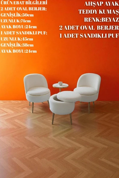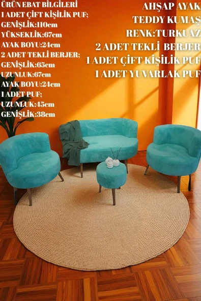 WoodyMaison Mina Oturma Takımı – İki Adet Tekli Berjer, Bir Adet İki Kişilik Puf ve Bir Adet Küçük Puf