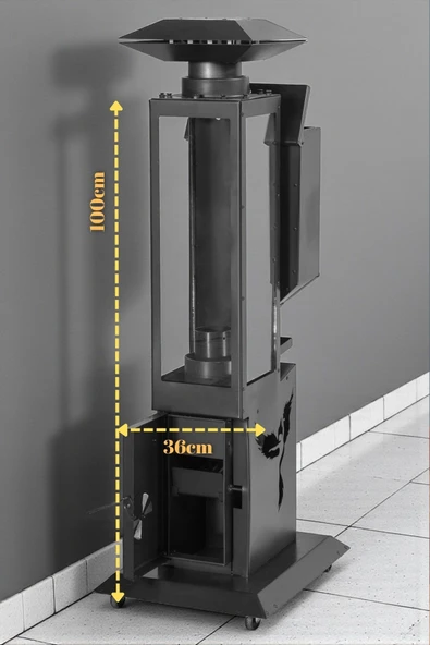 WoodyMaison Füze Tipi Döküm Pelet Soba – Camlı, Isı Ayarlı, Baca Çıkışlı