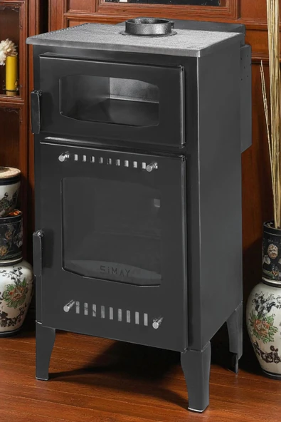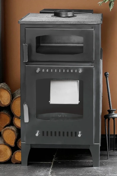 WoodyMaison Geniş Camlı 8 kW Odun & Pelet Şömine Sobası – Fırınlı Tasarım