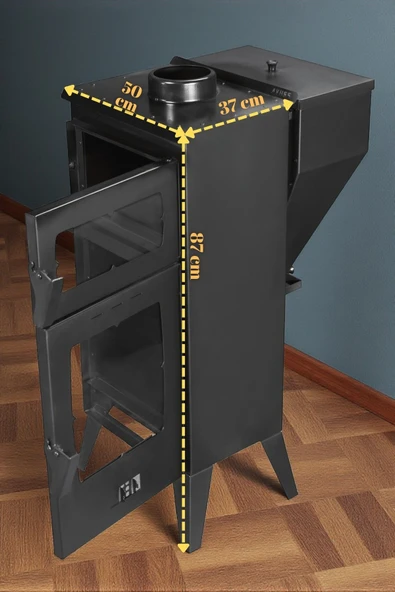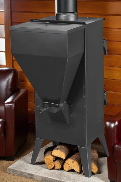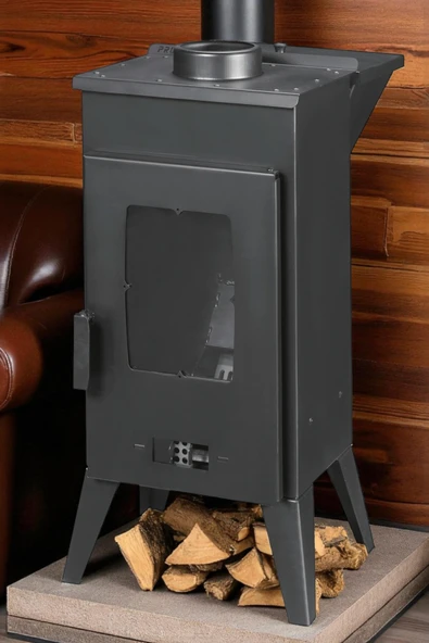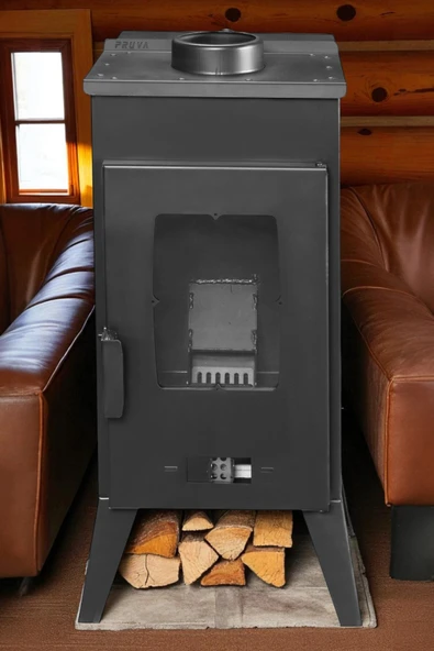WoodyMaison Füze Tipi Döküm Pelet Soba – Camlı, Isı Ayarlı, Baca Çıkışlı