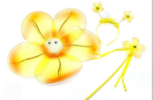 Gerçek Tüylü Katlanabilir Çocuk Pembe Melek Kanadı ve Asa Seti 40x55 cm
