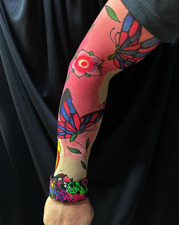 Giyilebilir Kol Dövmesi Çorap Dövme 3D Baskılı Kol Bacak Dövme 2 Adet Model 20