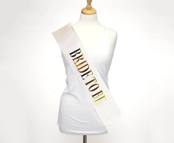 Beyaz Üzeri Altın Büyük Bride To Be Yazılı Simli Işıltılı Kuşak Kemer 10 cm Genişlik