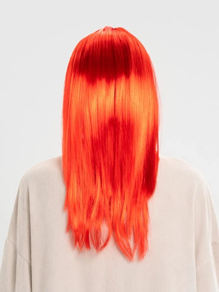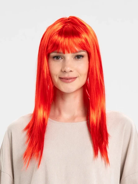 Kırmızı Renk Uzun Düz Parti Peruğu