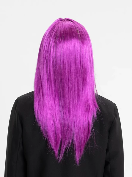 Fuşya Renk Düz Kesim Uzun Parti Peruğu Takma Saç