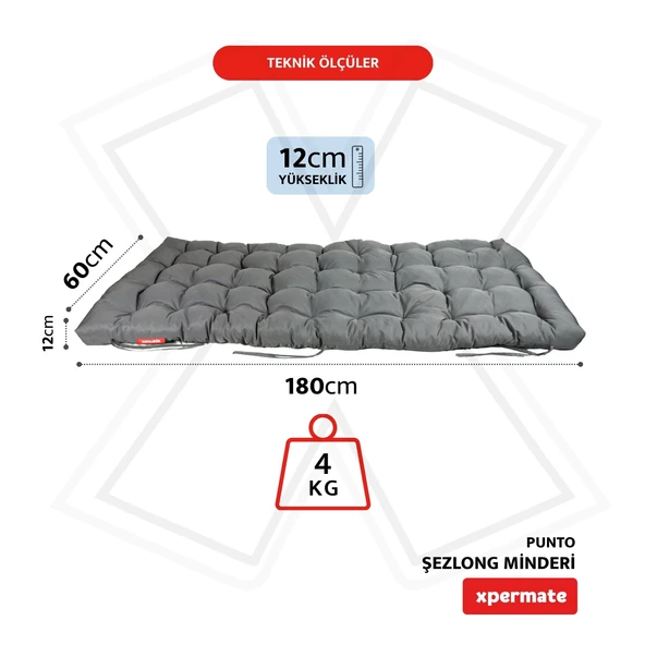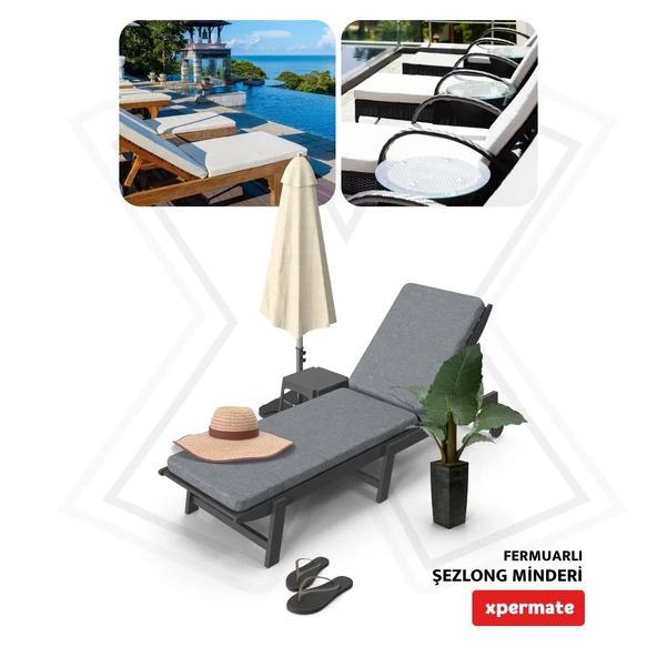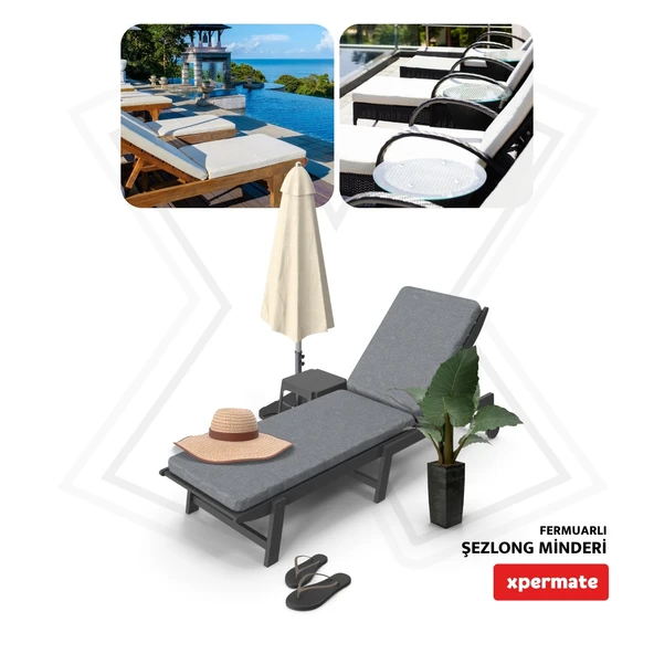 XPERMATE Katlanır Şezlong Minder Ve Puf Seti Su Itici Ve Uv Korumalı Kumaş Gri Sunbed ultımatecomfort