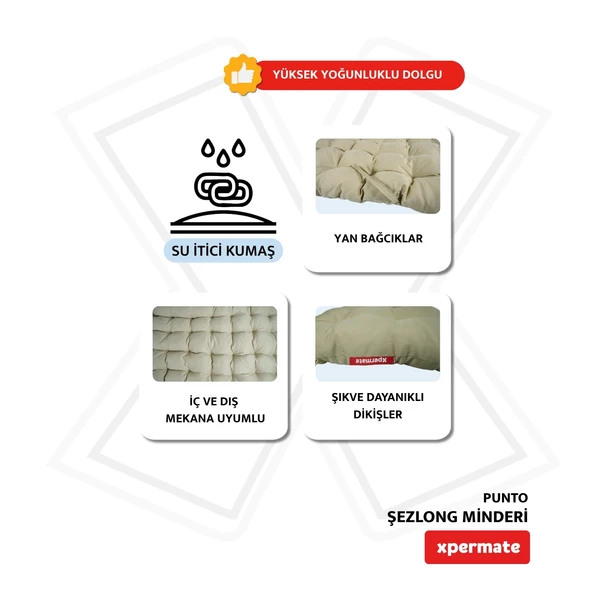 XPERMATE Katlanır Şezlong Minder Ve Puf Seti Su Itici Ve Uv Korumalı Kumaş Bej Sunbed ultımatecomfort