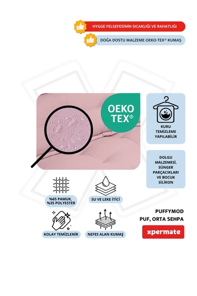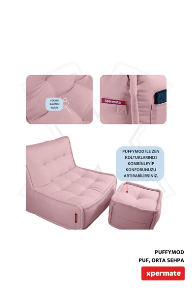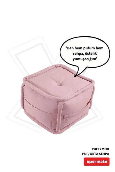 XPERMATE PuffyMod Dekoratif Kare Puf Orta Sehpa Ayak Uzatma Puf 40x40 cm Pembe