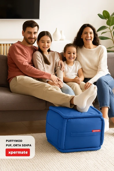XPERMATE PuffyMod Dekoratif Kare Puf Orta Sehpa Ayak Uzatma Puf 40x40 cm Mavi