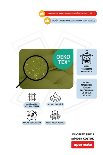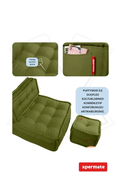 Xpermate DuoFlex Sırtlı Minder Koltuk İskandinav Tarzı Ergonomik Sırtlıklı Oturma Minderi 80x80x30 Yeşil