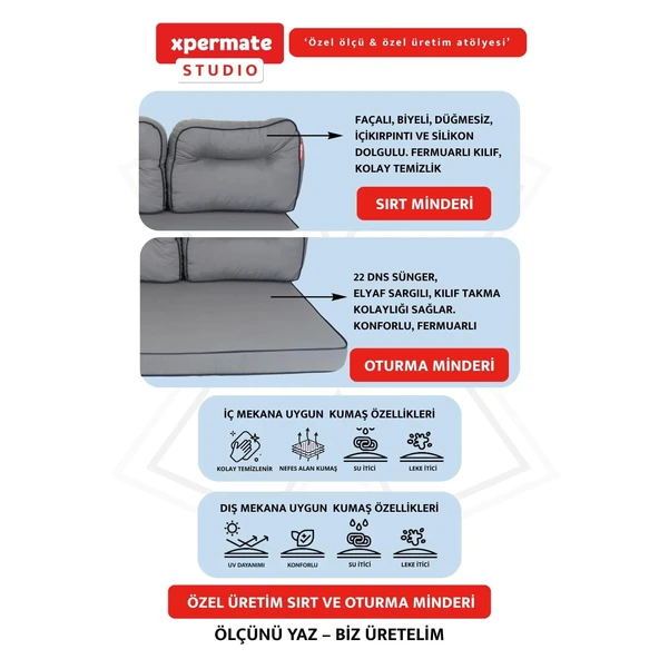 Özel Ölçü Palet Minderi Bahçe İç Ve Dış Mekan Minder Koltuk Minder 40x150 45x155 50x160