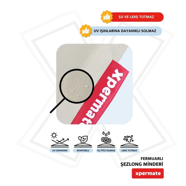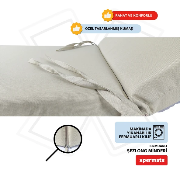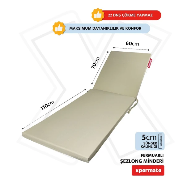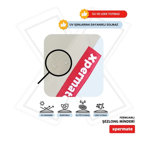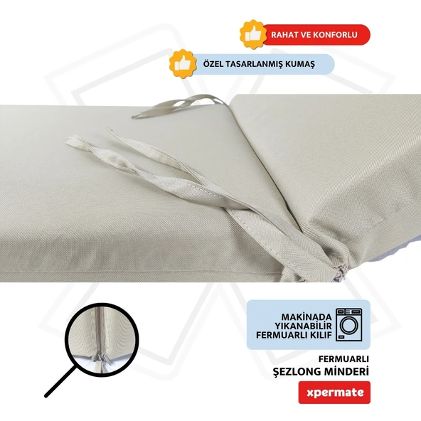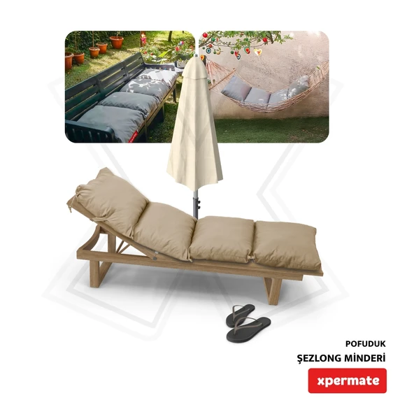 XPERMATE Pofuduk Şezlong Minderi Çantalı 60x180x12Cm Su İtici,Katlanır,UV Güneş Dayanımı, Fermuar, Bej