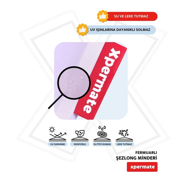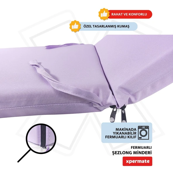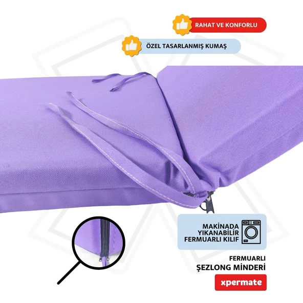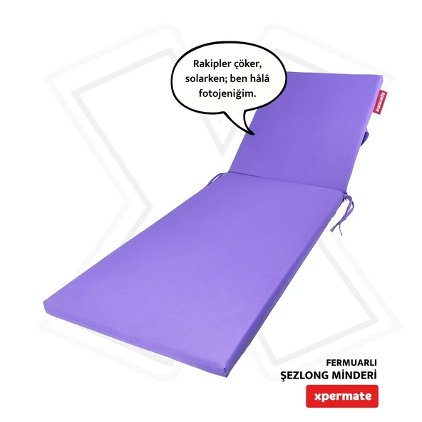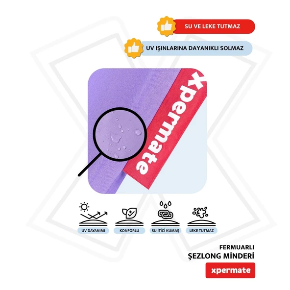 XPERMATE Pofuduk Şezlong Minderi Çantalı 60x180x12Cm Su İtici,Katlanır,UV Güneş Dayanımı, Fermuar, Lila