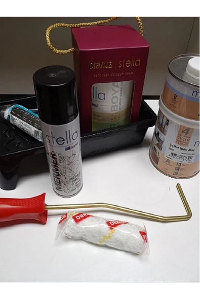 Stella Boya Seti(1 LT BOYA(VİZON GRİ) -RULO-FIRÇA-BOYA TAVASI)