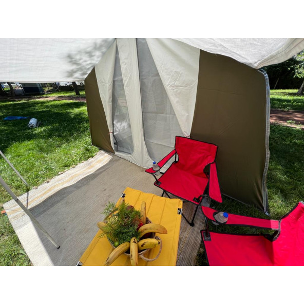 Yamaç Mutfaklı Kapıda Sineklikli Haki Yeşil Kamp Çadırı