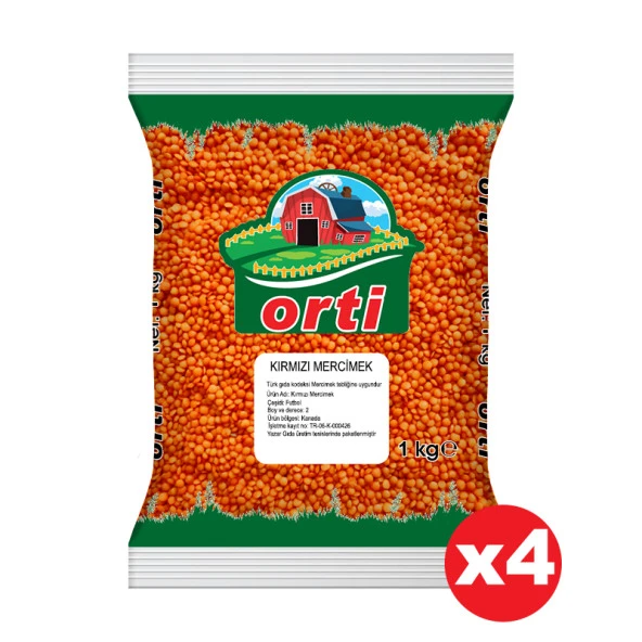 Orti Kırmızı Mercimek 1 Kg. x 4 Adet