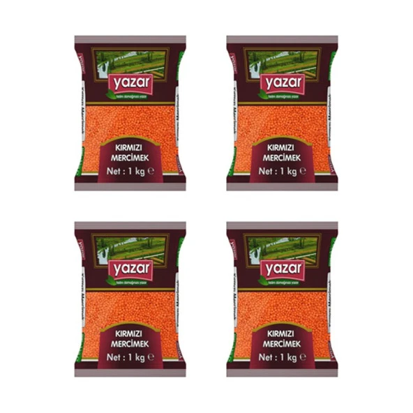 Yazar Yerli Kırmızı Mercimek 1 Kg. x 4 Adet