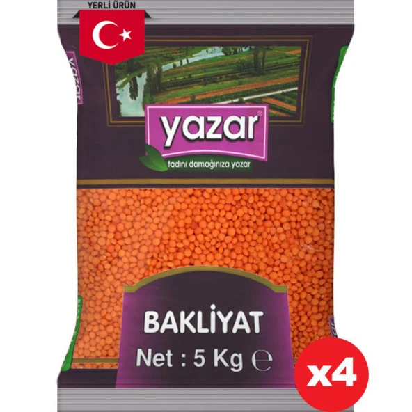 Yazar Yerli Kırmızı Mercimek 5 Kg x 4 Adet