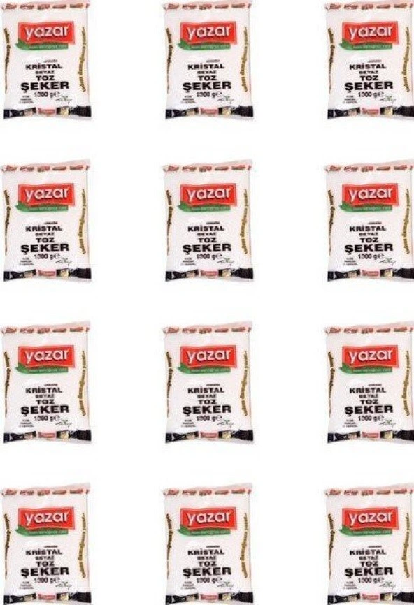 Yazar Kristal Toz Şeker 1 Kg x 12 Paket